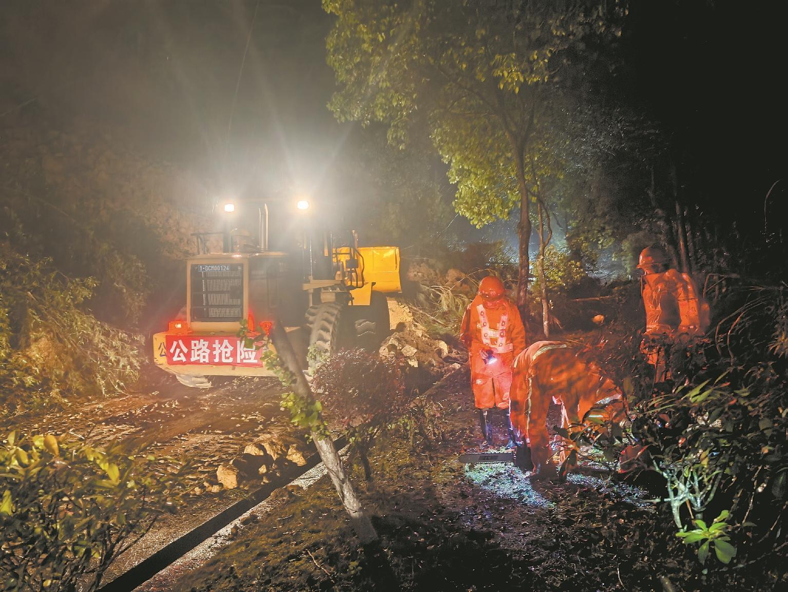 强降雨突袭泉州德化 抢险人员雨夜奋战清理溜方保畅通
