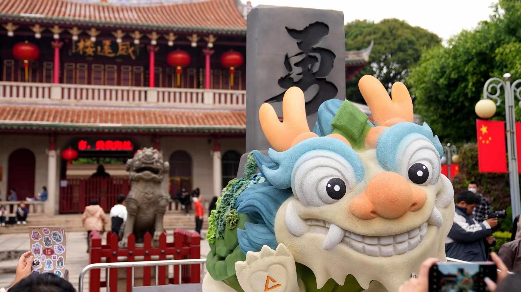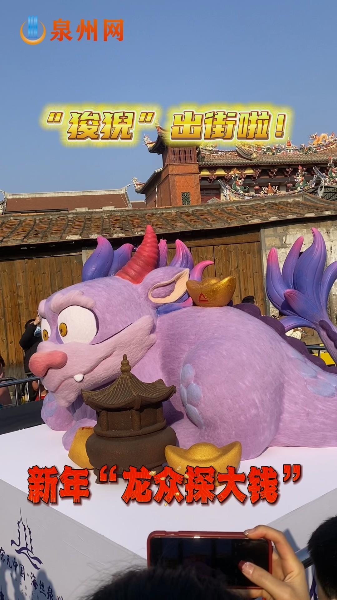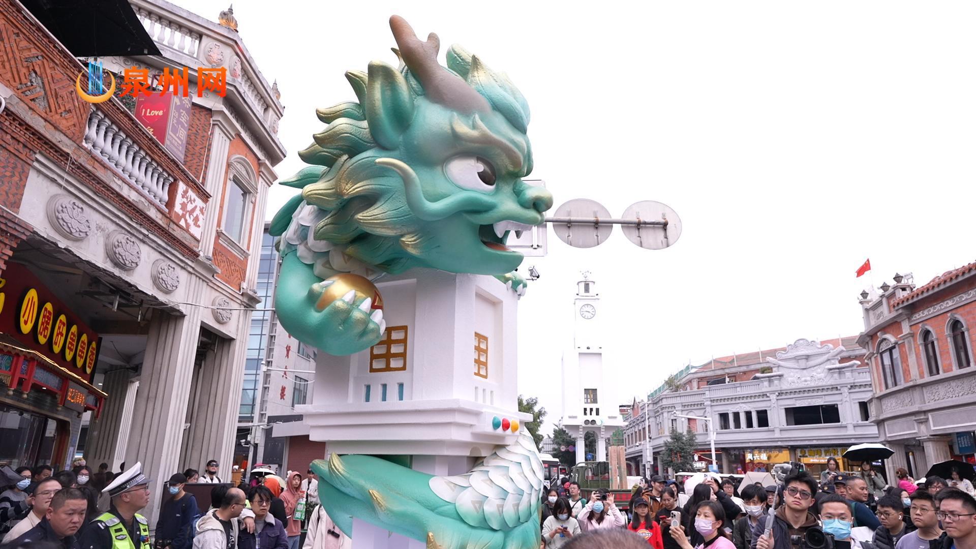 泉州古城十龙九子艺术装置“狻猊”亮相关帝庙!新年“龙众探大钱”!