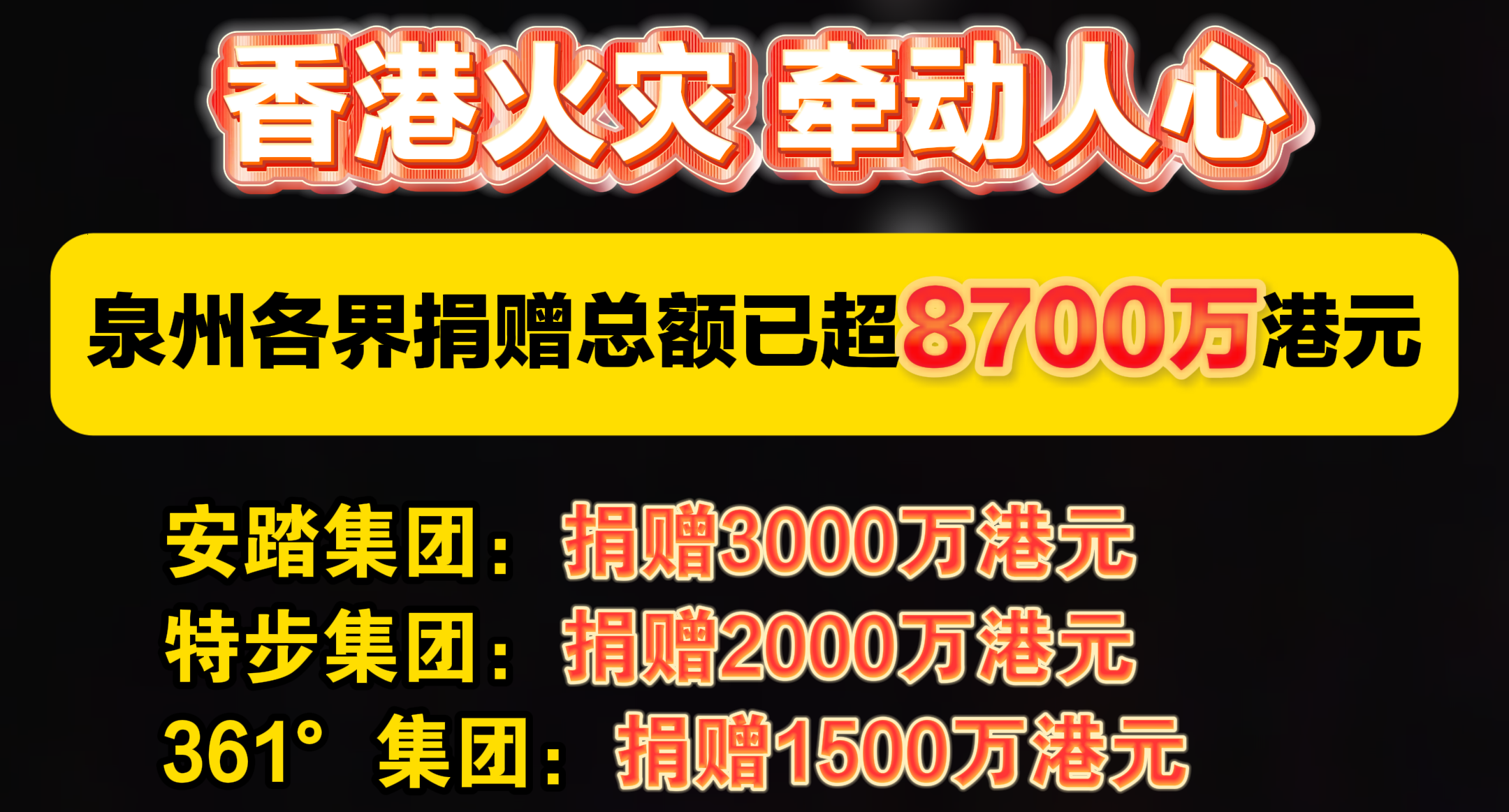 香港火灾,牵动人心泉州各界捐赠总额已超8700万港元