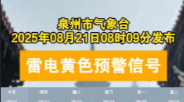 泉州市气象台2025年08月21日08时09分发布雷电黄色预警信号