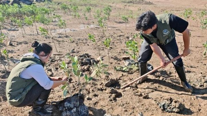 青年学子暑期结伴栽种红树苗 守护湿地生态