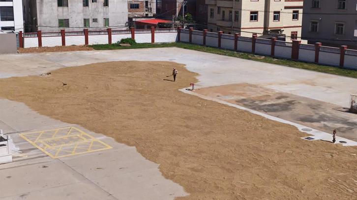暑假校园空地变身稻谷晒场 解农户“晒粮难”的燃眉之急