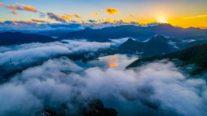 德化龙门湖晨韵 碧水金霞映生态新篇