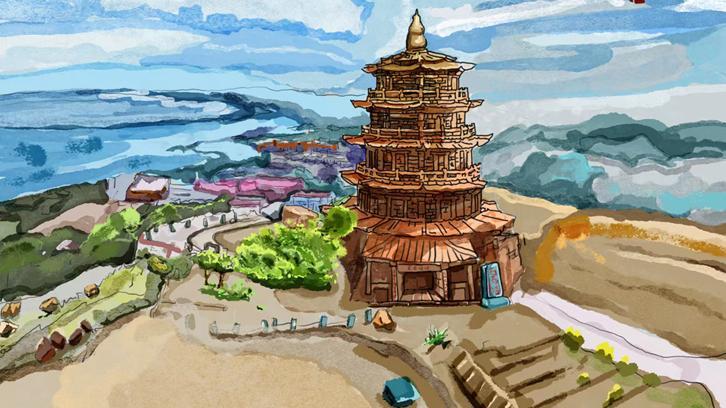 泉州古城有个“油画爷爷”在二维画布上“立起”3D闽南古大厝