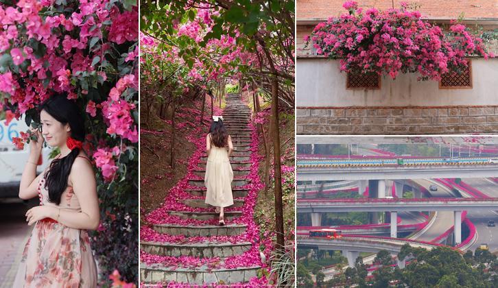 含蕊红三叶 临风艳一城 姹紫嫣红的三角梅为泉州披上粉色衣裙