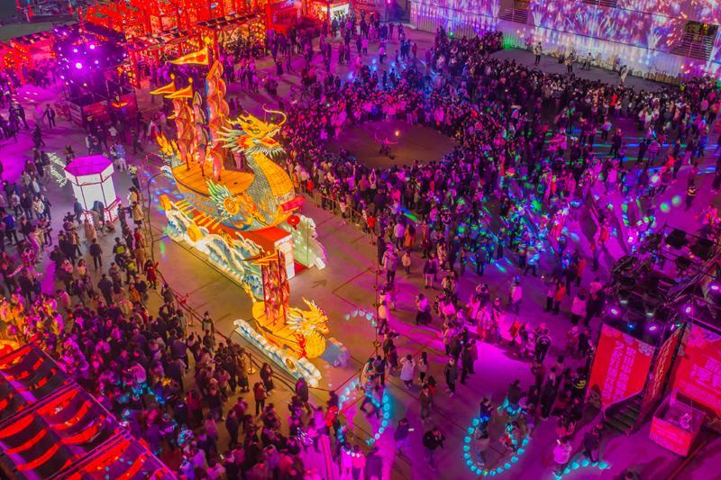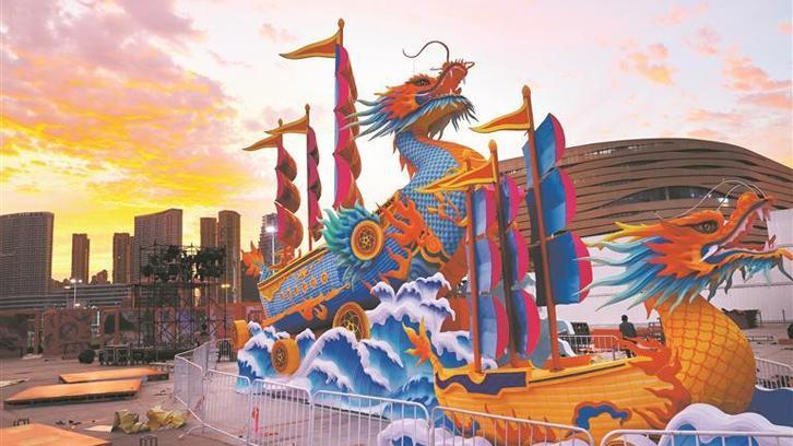 泉州中央商务区有风夜市广场的“巨龘灯王”受市民热捧