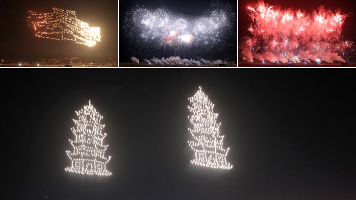 蔡国强无人机和烟火秀助力海艺节开幕 光影漫舞 烟花满天