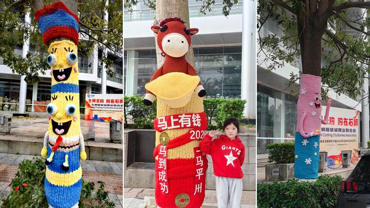 石狮上演街头“时装秀” 行道树“穿毛衣”迎新年