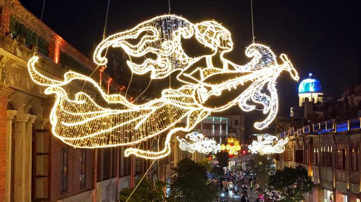 千灯映古城 “妙音”唤春来 泉州大街小巷流光溢彩