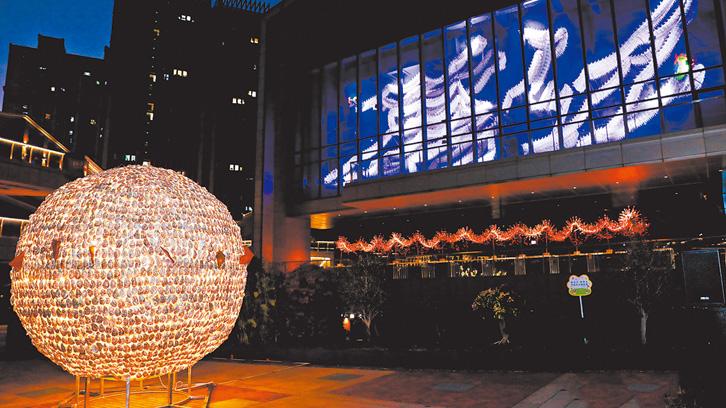 晋江首个马年艺术装置“双龙戏珠”五店市亮灯