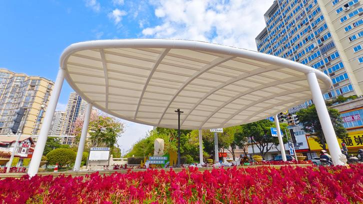 泉州中心市区多个路口遮阳棚陆续“上岗”