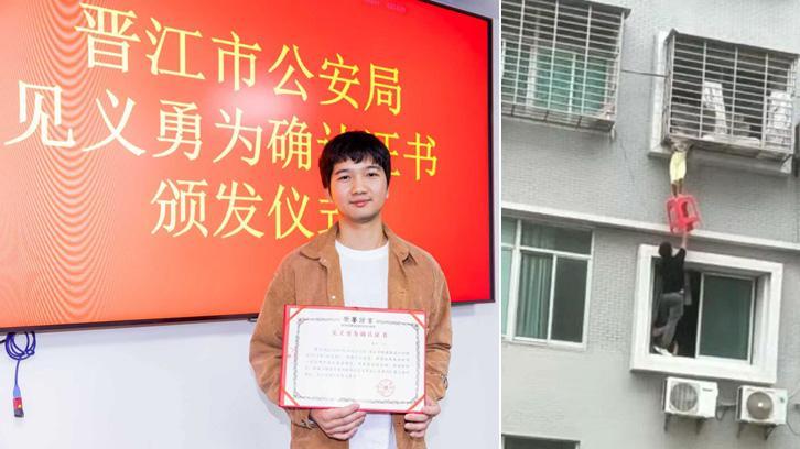 “小伙踏出窗台举凳救人”追踪:“托举哥”黄飞获评“见义勇为勇士”