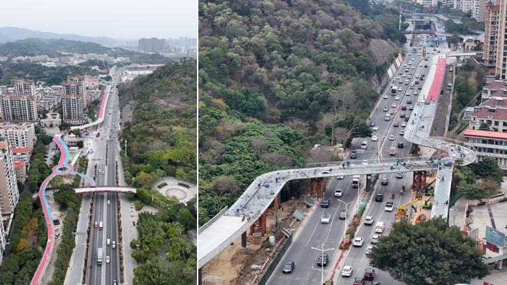 泉州市区坪山路北段快捷化改造 千米人行天桥有望春节前开放