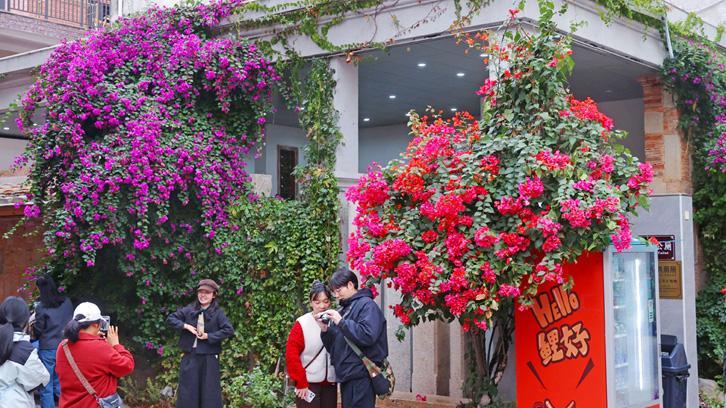 三角梅绚烂开放 各色花朵缀满枝头 泉州古城生机盎然