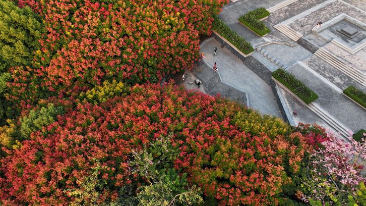 一树栾花一树秋 泉州市区大坪山栾树花开成海