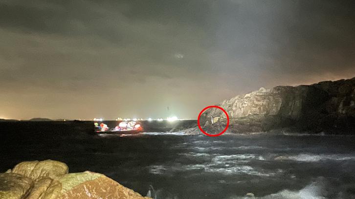 景区关闭 男子夜困礁石 两勇士顶风破浪营救