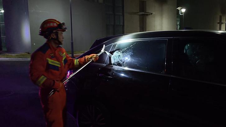 男子喝醉反锁车内 消防破拆车窗救助