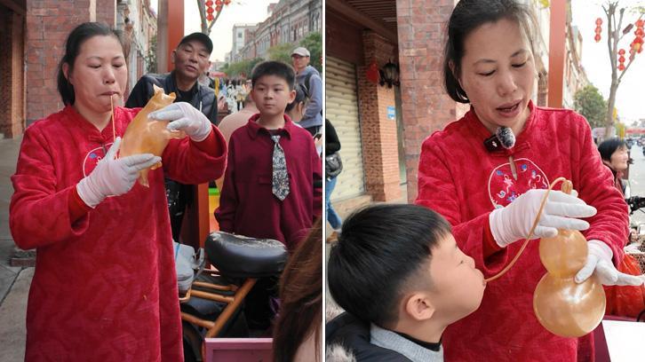 一口气吹出个“胖葫芦”! 泉州街头这门指尖绝活太好玩了