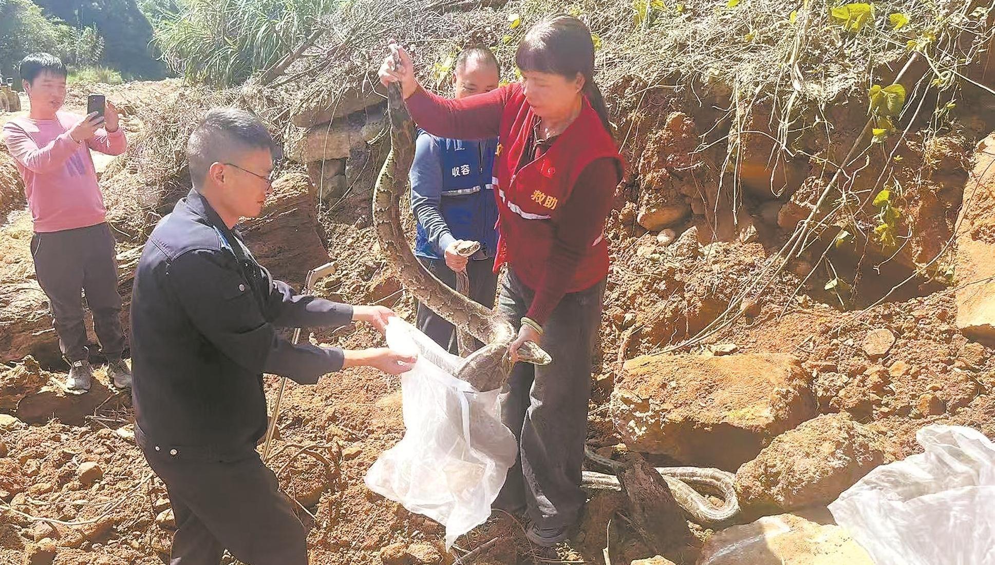 修河堤惊扰出3条大蟒蛇 均为本地物种 观察期结束后将放生
