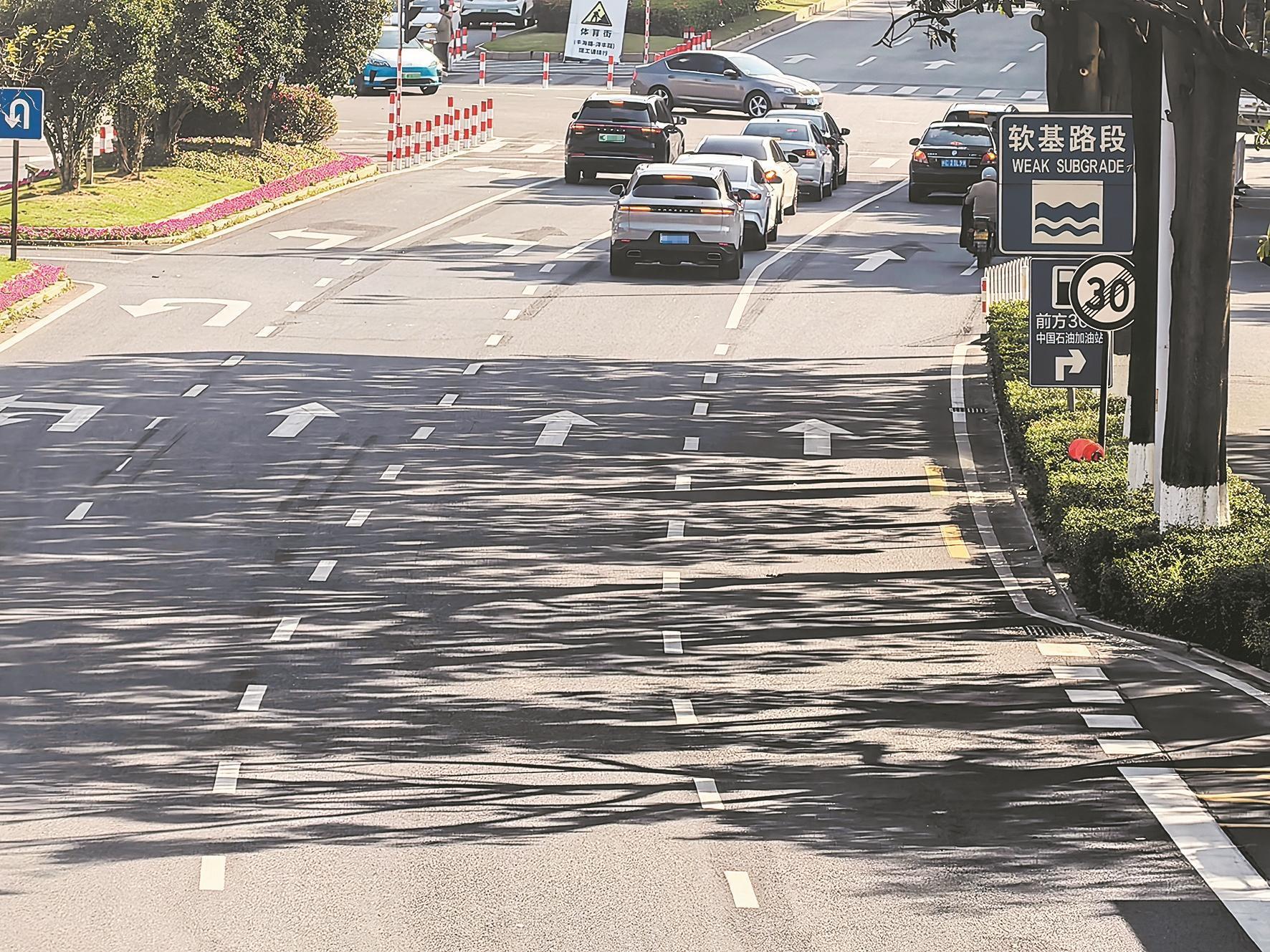 泉州市区刺桐北路路中出现“凹陷带”