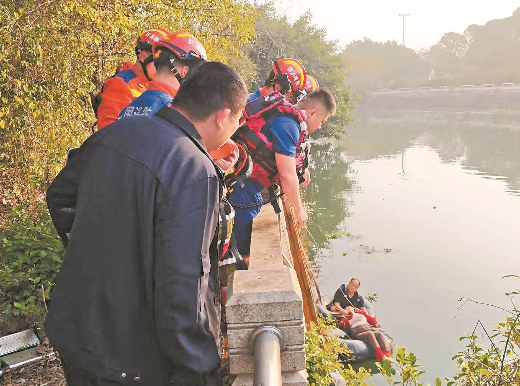 妻子跳河丈夫施救 双双被困水中