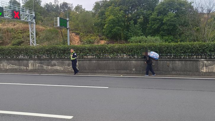 男子背着行李 高速路上逆行 高速交警及时处置消除安全隐患