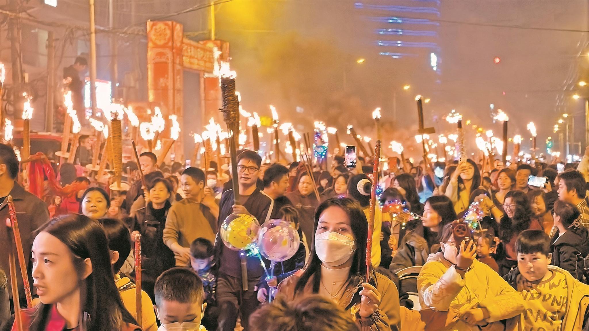 晋江永和“火把节”:千米“火龙”巡游 非遗出圈添年味