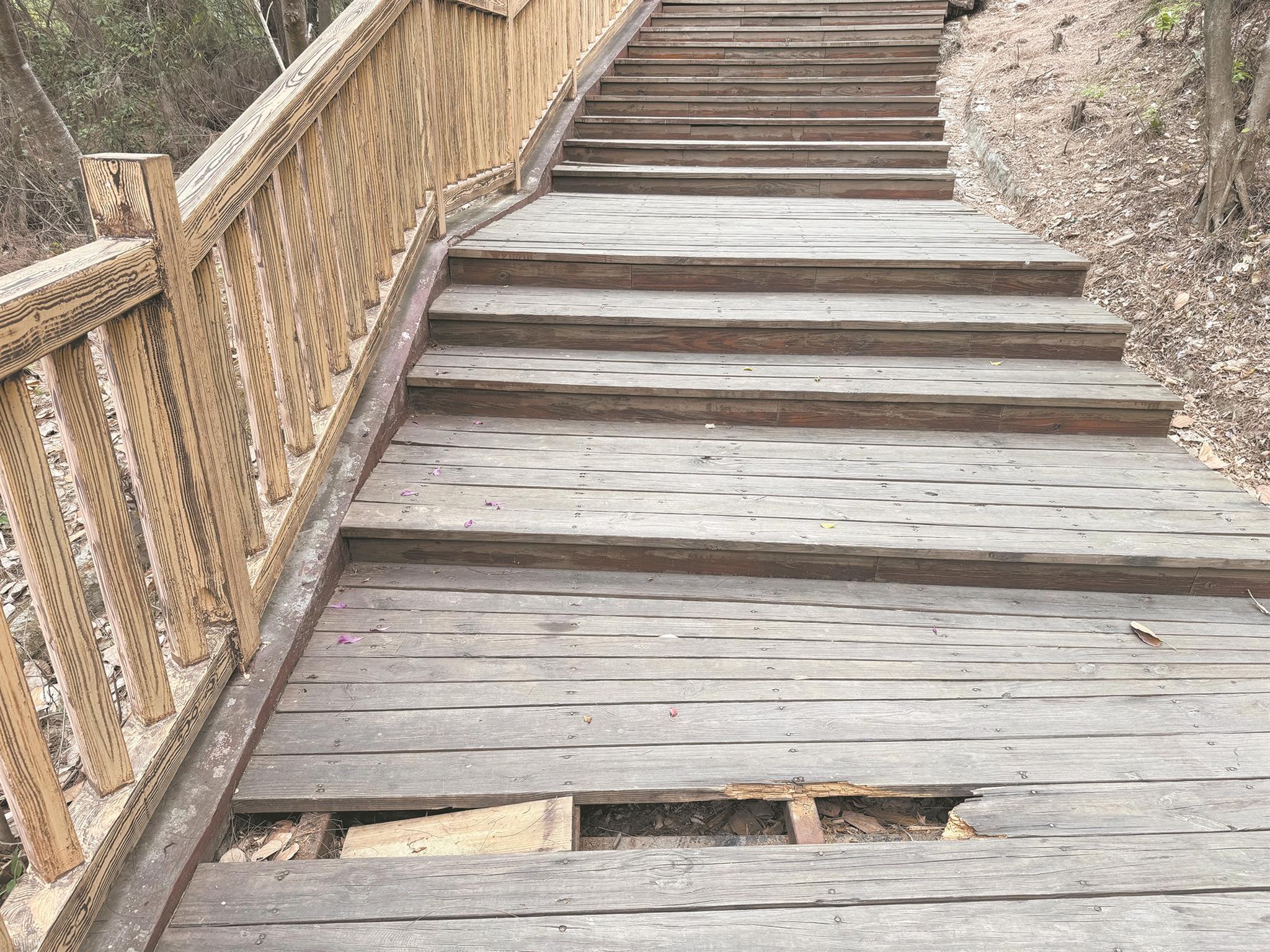 翻修仅半年又现破损 桃花山公园木栈道陷“修补循环”?