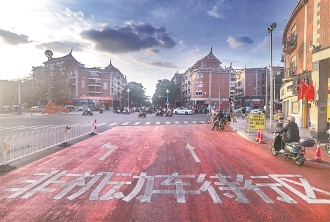 泉州市区多个路口设非机动车待行区 方便电动车通行