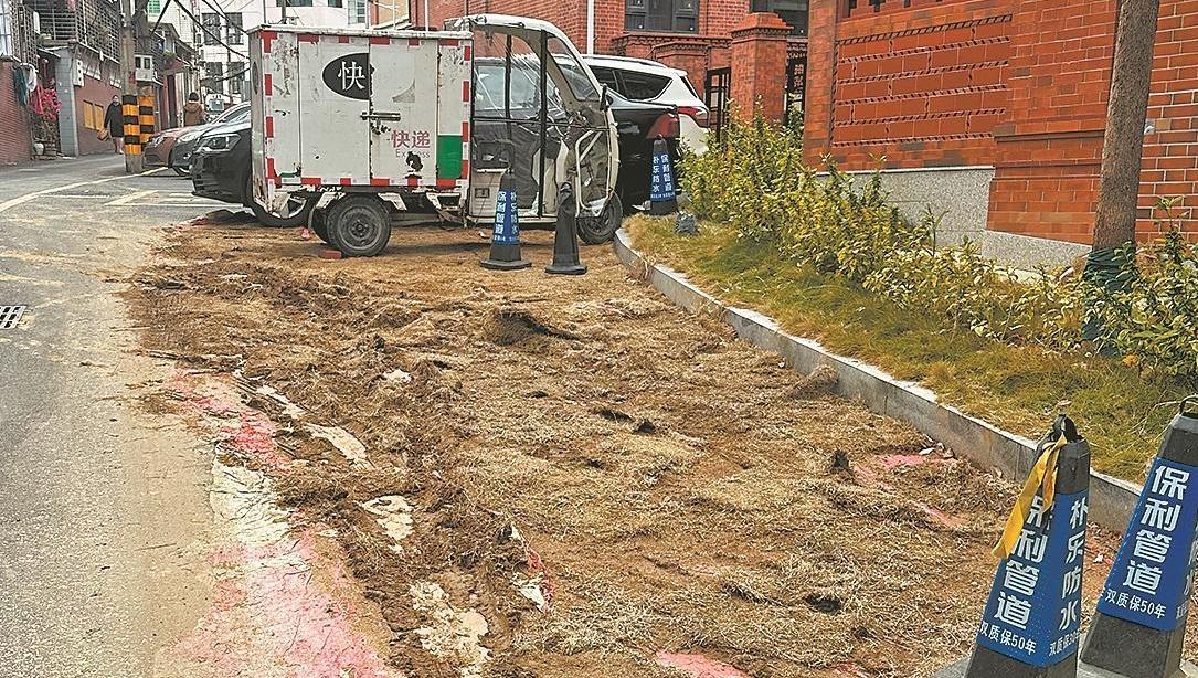 奇!沥青路上铺布“种”草
