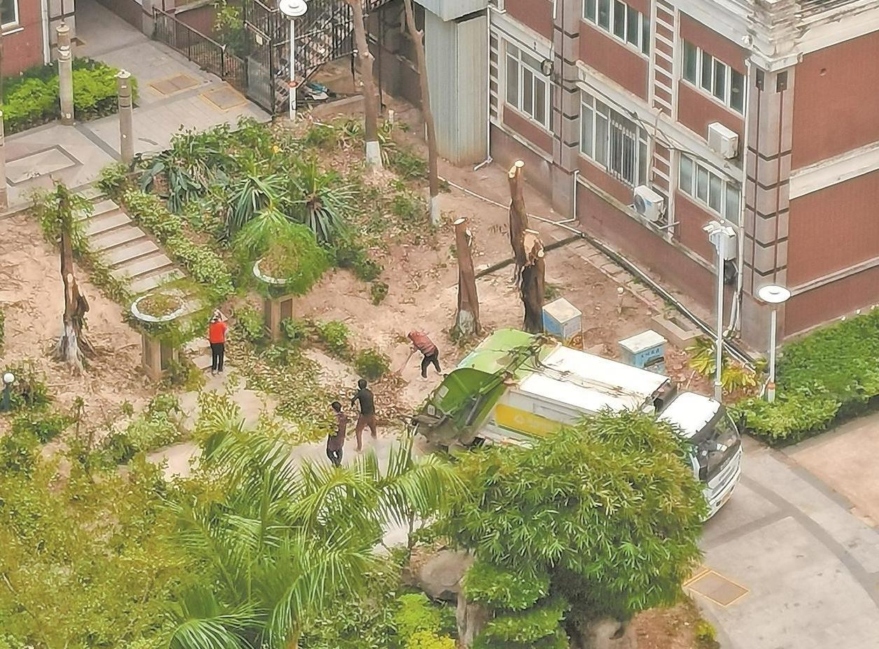 惠安县君悦华庭:树木被砍仅剩树干 小区住户觉得可惜