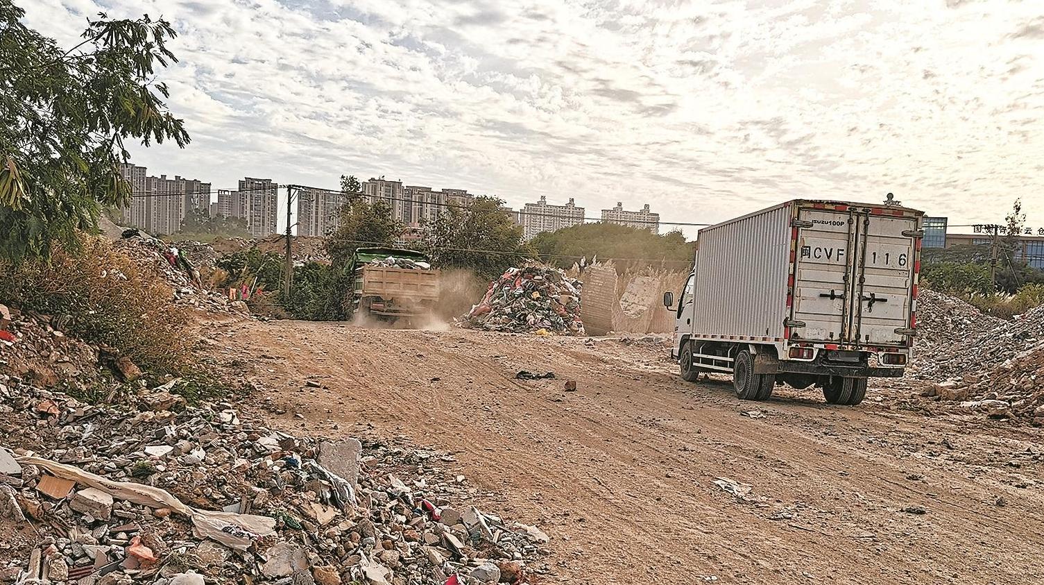 石狮市宝盖镇玉浦花园拆迁空地垃圾成堆 粉尘飞扬影响周边