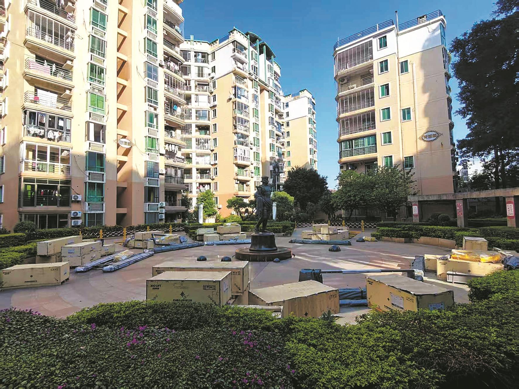 丰泽区阳光巴黎一期:小区广场被围起来堆放物品