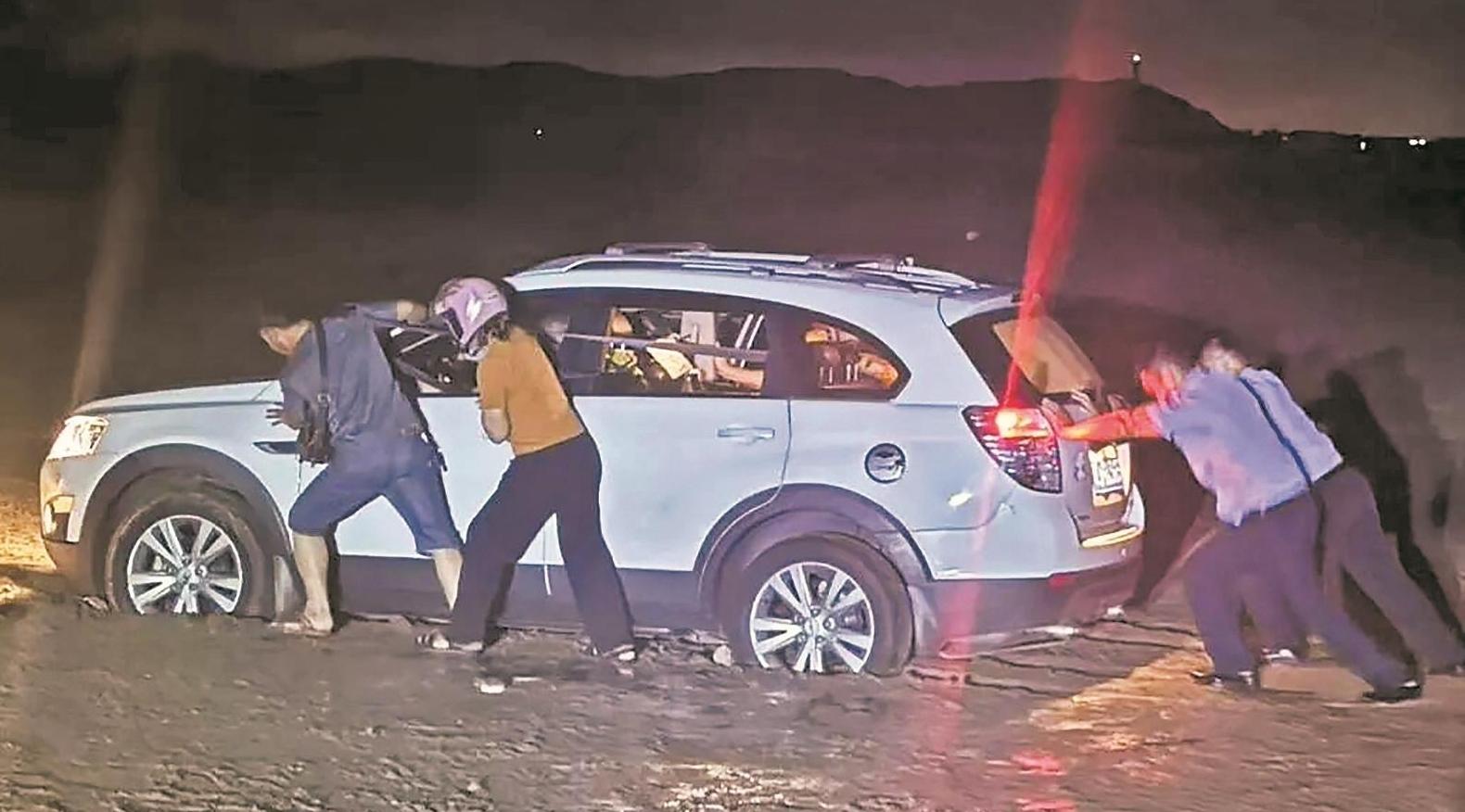游客车陷淤泥 民警30分钟协力推出