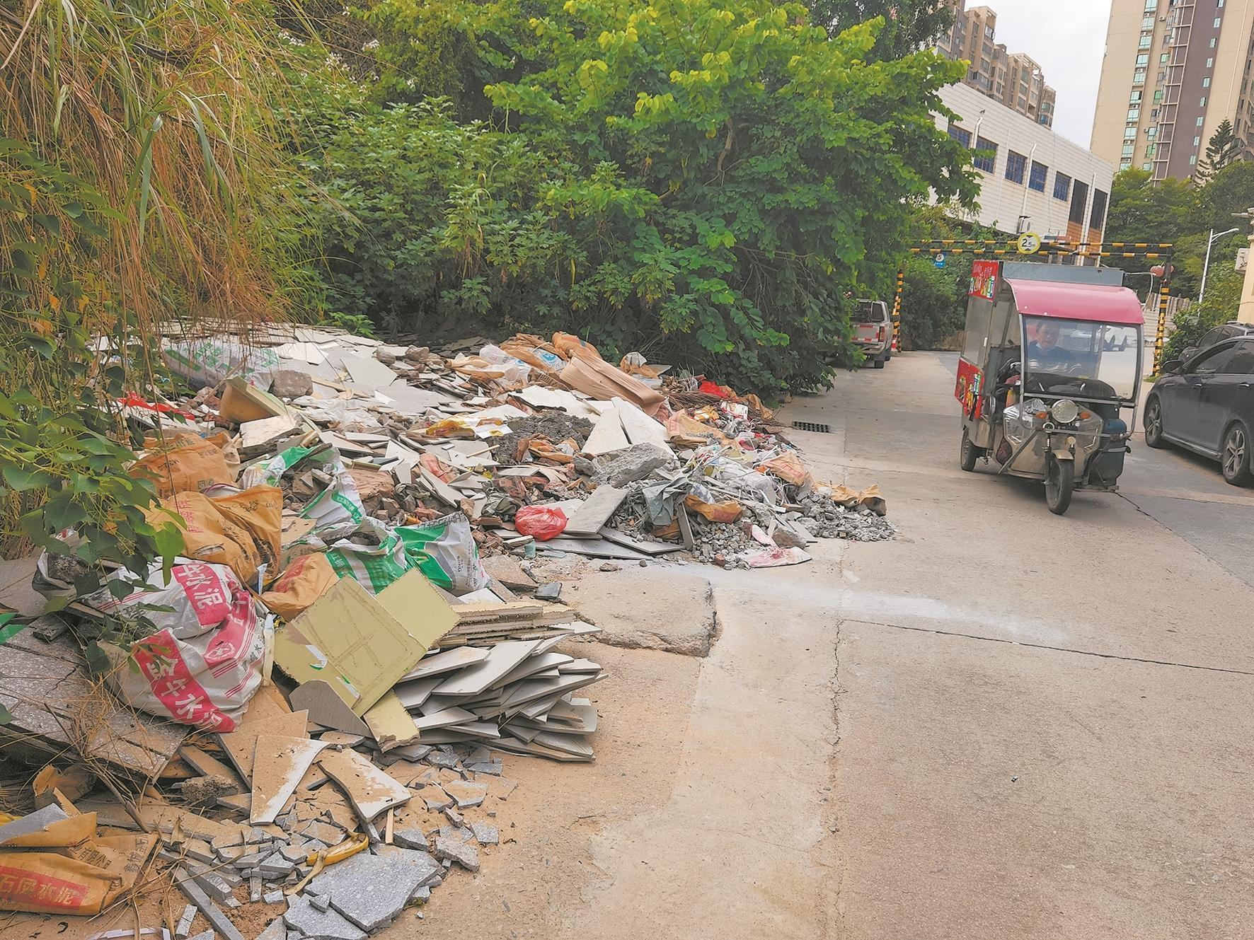 惠安县螺城镇君和路:建筑垃圾堆积在路边