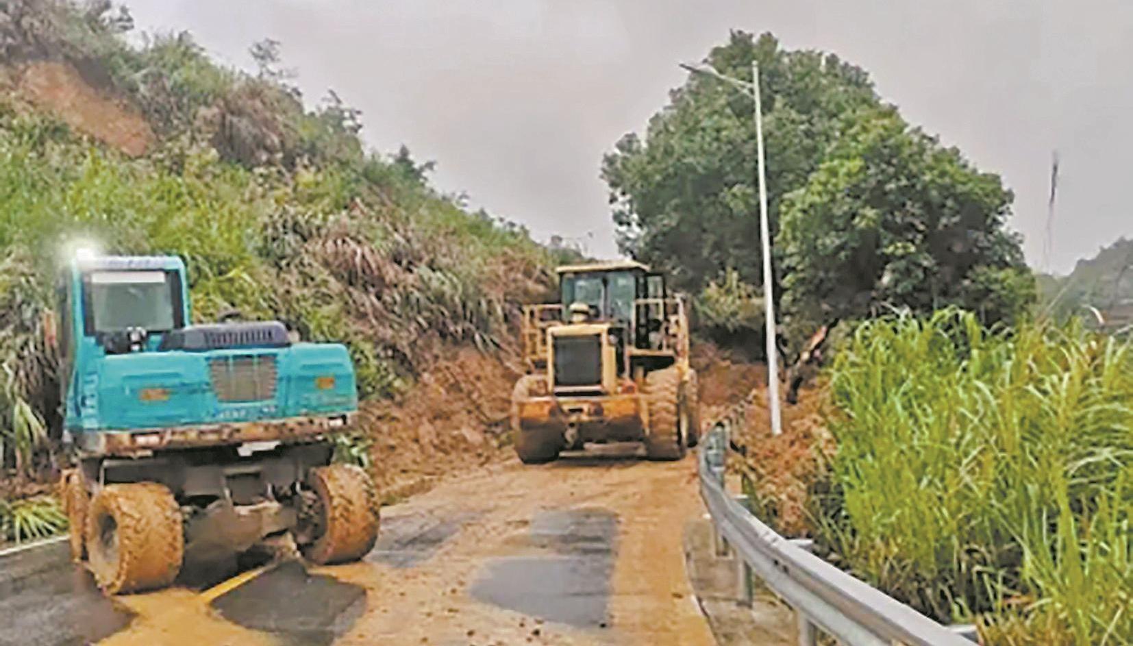 安溪芦田:边坡溜方道路受阻 工作人员冒雨抢通