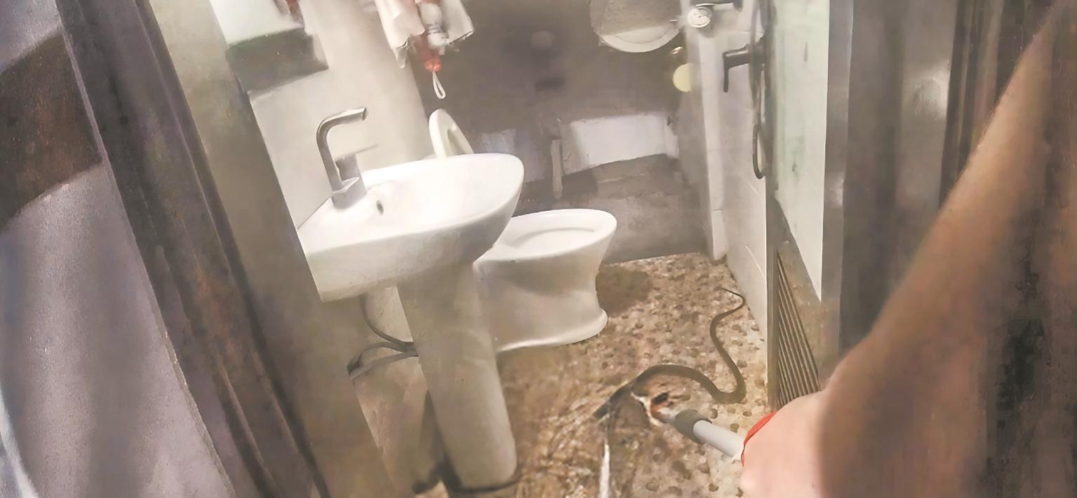 七旬老人走进浴室洗澡 一条长黑蛇盘踞地板上