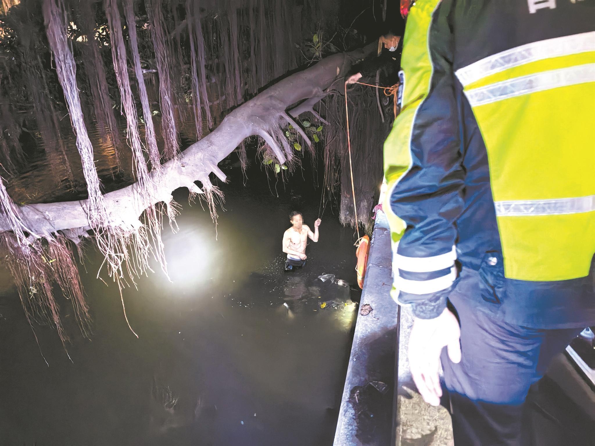 晋江陈埭:为逃避交警检查 男子竟弃车跳河