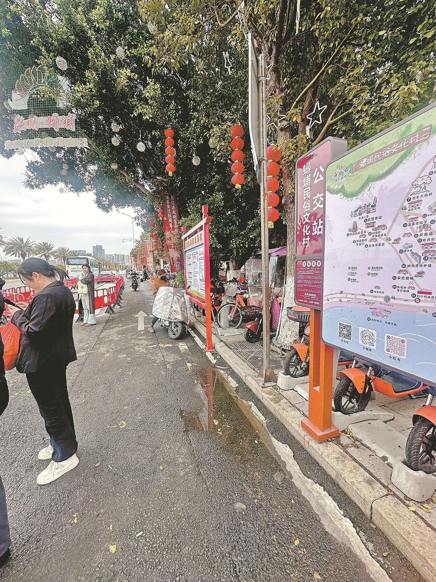 丰泽区蟳埔民俗文化村路口:指示牌标注“公交站”却无车停靠