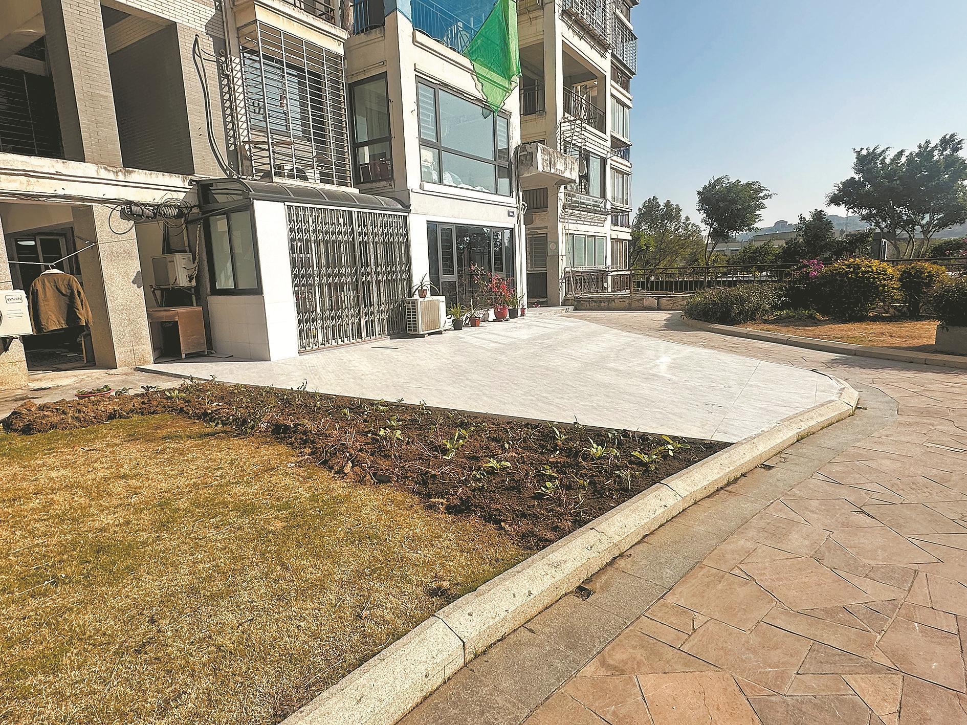 丰泽区宝秀小区:公共绿地被私占 硬化铺砖又种菜