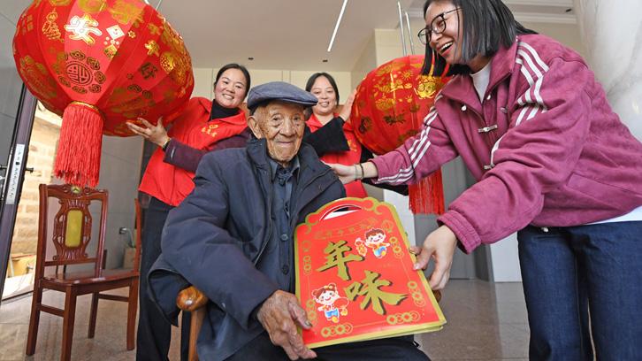 银发挥毫送祝福 趣味投壶年味浓