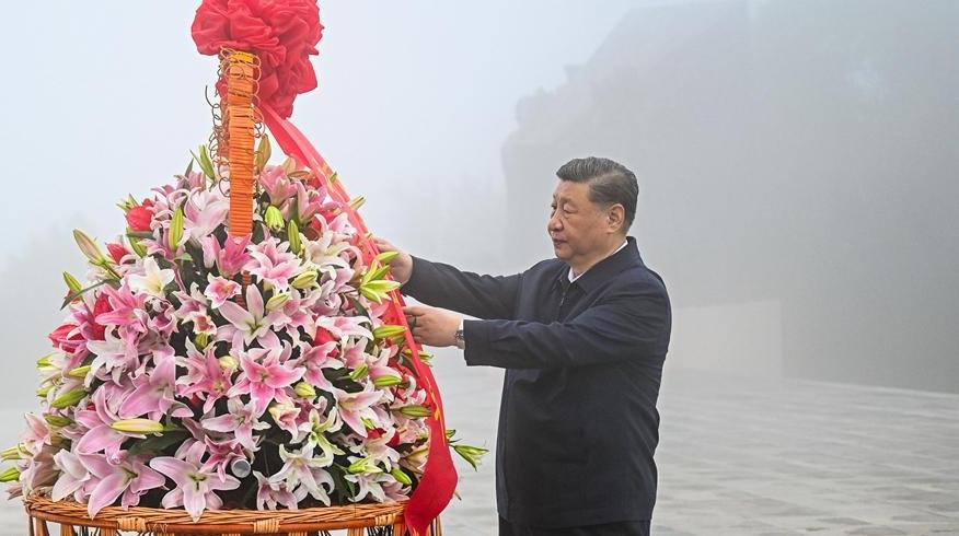 习近平在山西阳泉市向抗战烈士敬献花篮并参观百团大战纪念馆